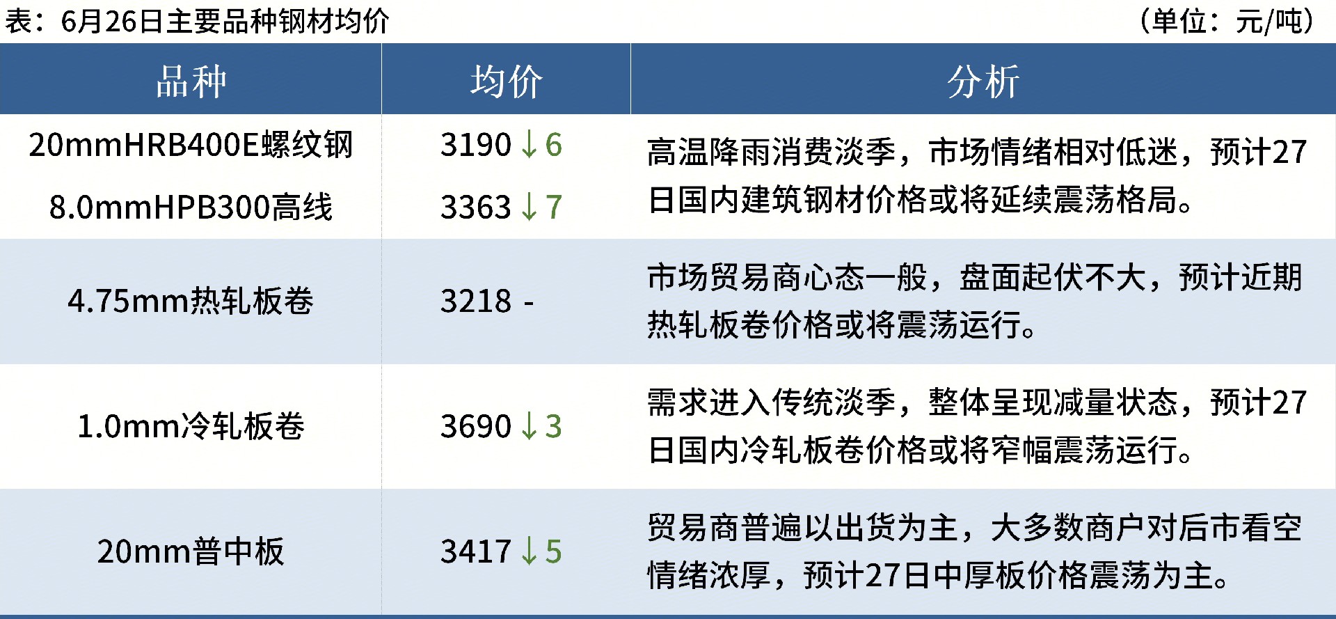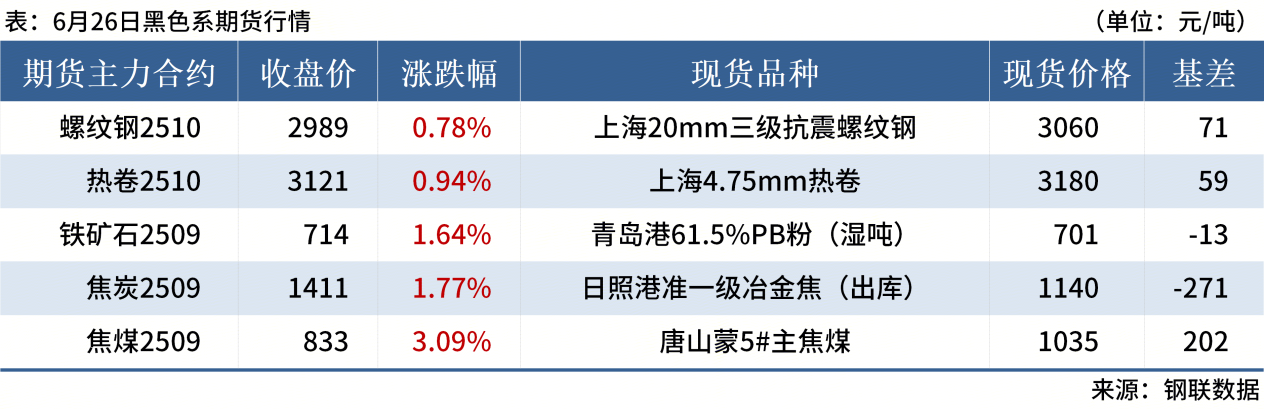 ◎ 6月26日,全國主港鐵礦石成交87.20萬噸,環(huán)比減19%;237家主流貿(mào)易商建筑鋼材成交9.93萬噸,環(huán)比增6.2%。