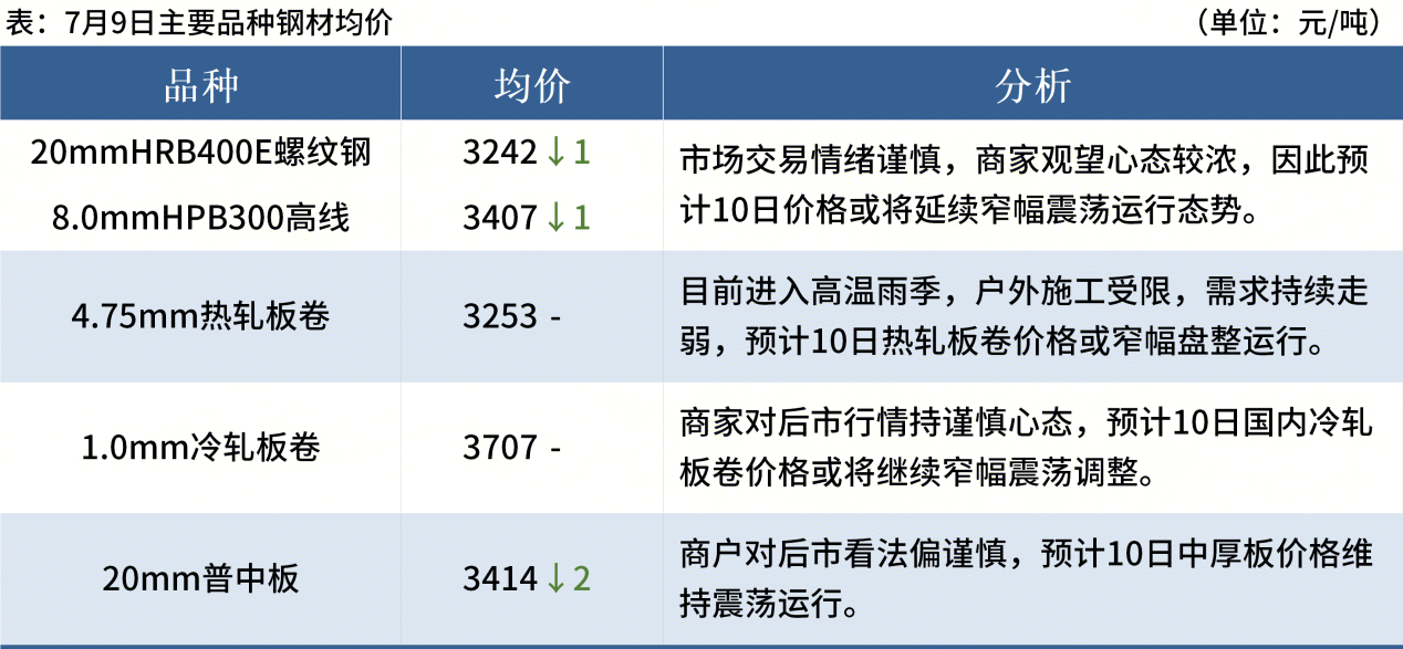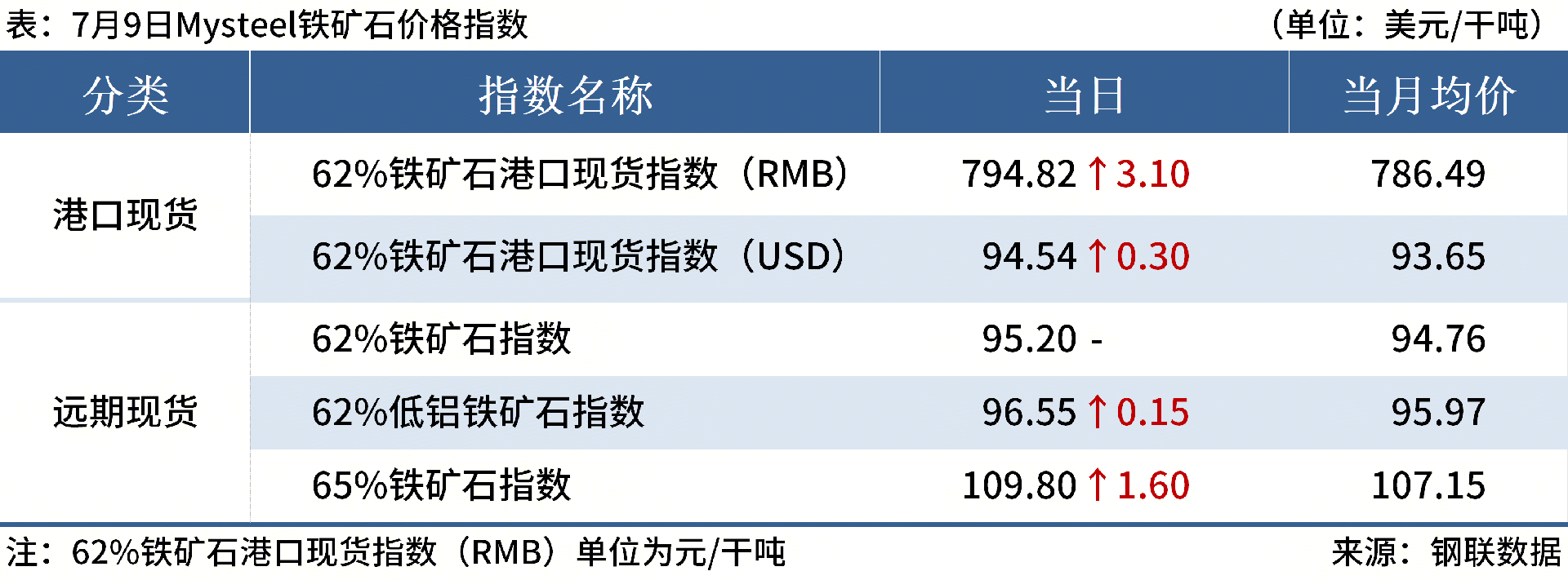 ◎ 7月9日,全國(guó)主港鐵礦石成交94.20萬(wàn)噸,環(huán)比減5.7%;237家主流貿(mào)易商建筑鋼材成交8.85萬(wàn)噸,環(huán)比減7.5%。