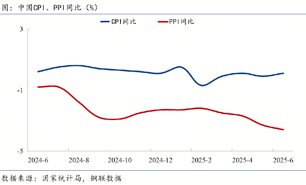 ◎ 國(guó)家統(tǒng)計(jì)局:2025年6月,中國(guó)PPI同比下降3.6%,環(huán)比下降0.4%。中國(guó)CPI同比上漲0.1%,環(huán)比下降0.1%。