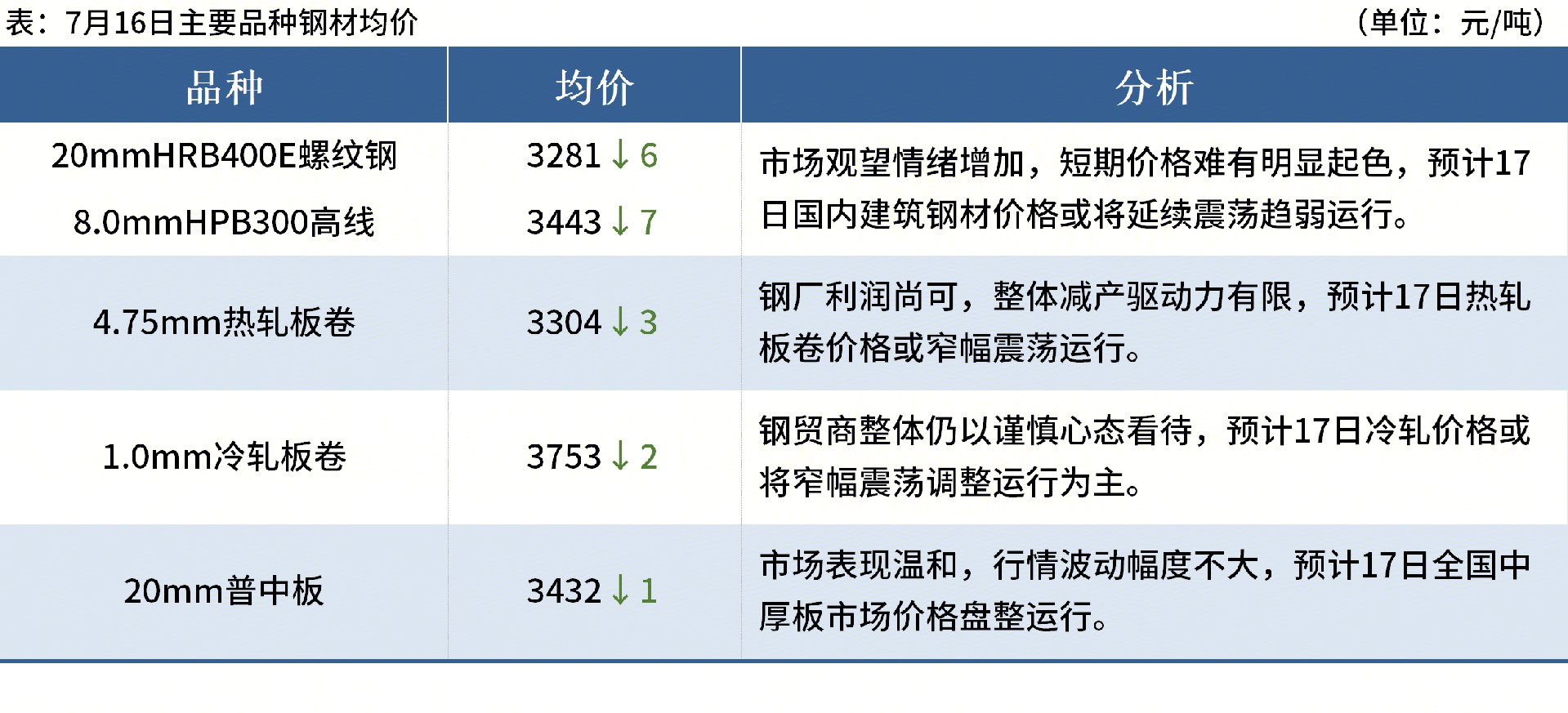 ◎7月16日,全國主港鐵礦石成交100.00萬噸,環(huán)比減1.5%;237家主流貿(mào)易商建筑鋼材成交8.74萬噸,環(huán)比增1.3%。