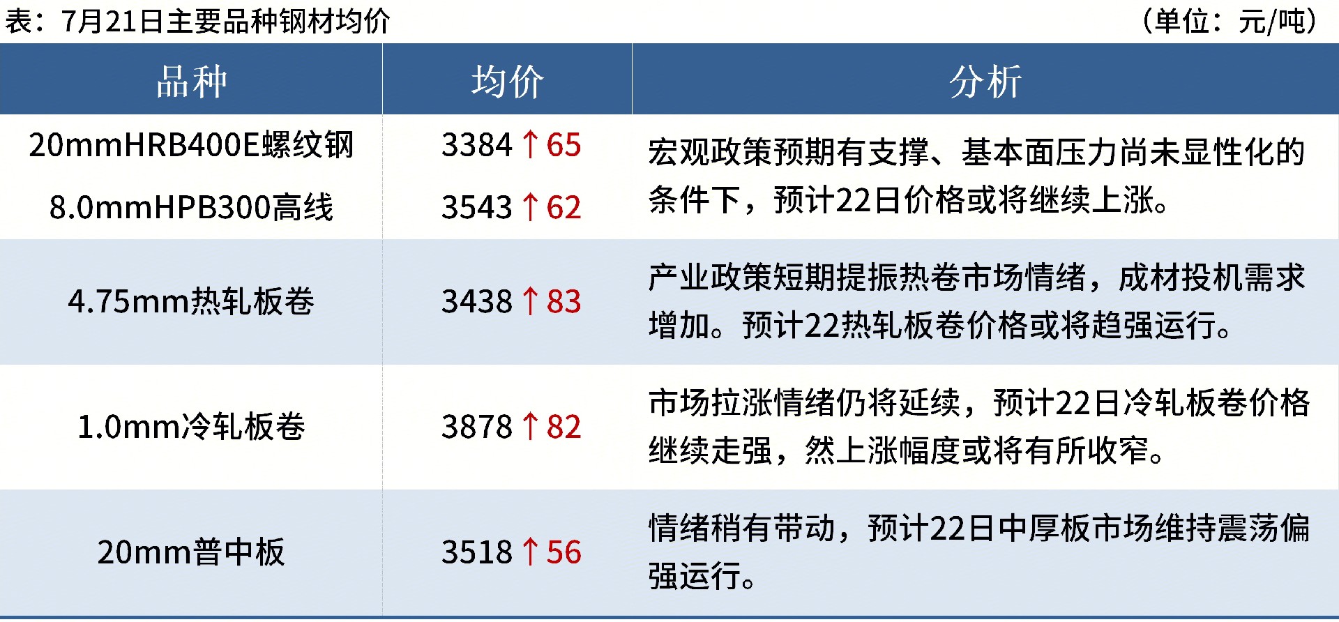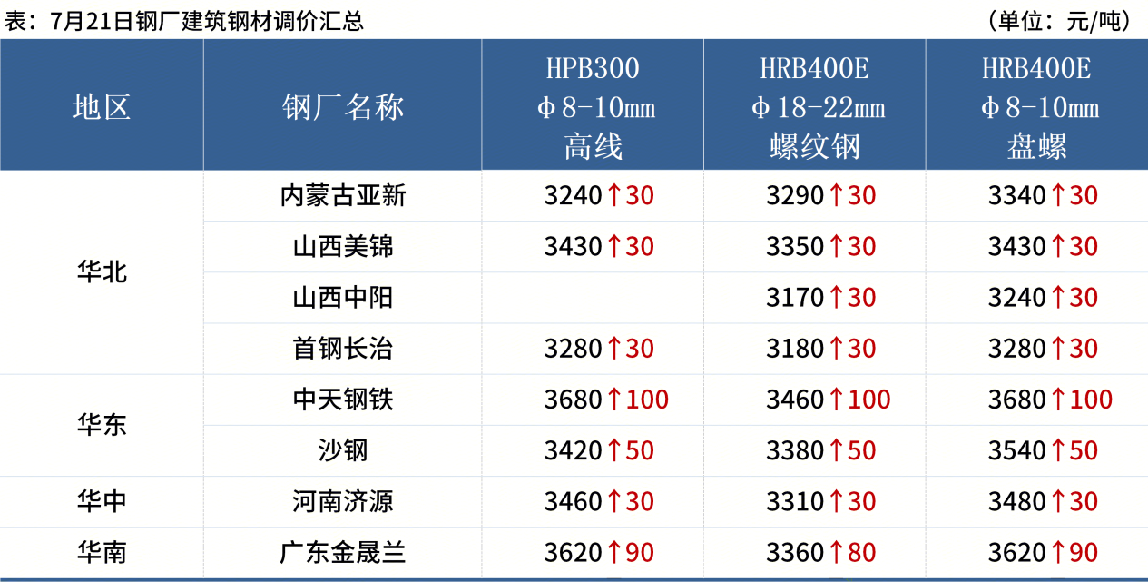 ◎ 7月21日,唐山遷安普方坯資源出廠含稅上調(diào)20,報(bào)3060元/噸。