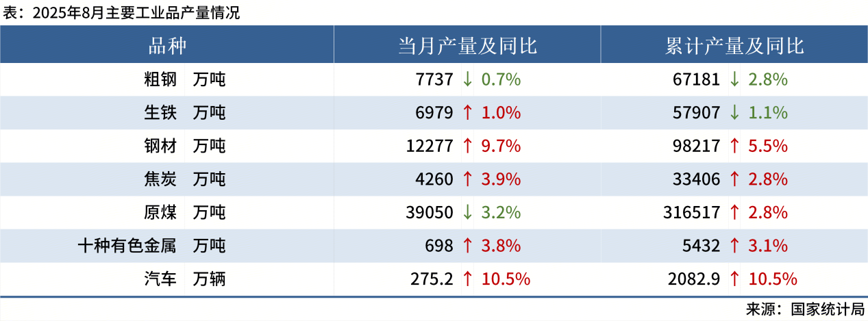 ◎ 國家統(tǒng)計(jì)局公布數(shù)據(jù):2025年8月中國粗鋼產(chǎn)量7737萬噸,同比下降0.7%。其他主要工業(yè)品產(chǎn)量如下: