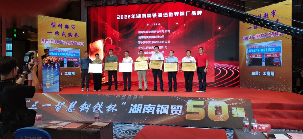 公司應(yīng)邀參加“智慧漣鋼”第三屆中國(中部)鋼鐵產(chǎn)業(yè)鏈發(fā)展論壇6月23日下午,由湖南省工商聯(lián)指導(dǎo),湖南省金屬材料商會主辦,我公司協(xié)辦的“智慧漣鋼”第三屆中國(中部)鋼鐵產(chǎn)業(yè)鏈發(fā)展論壇暨“三一智慧鋼鐵杯”湖南鋼貿(mào)50強系列評選頒獎盛典在長沙隆重舉行。我公司供銷副總韓文濤和銷售部長郭曉衛(wèi)參與本次會議。我公司產(chǎn)品以良好的知名度···
